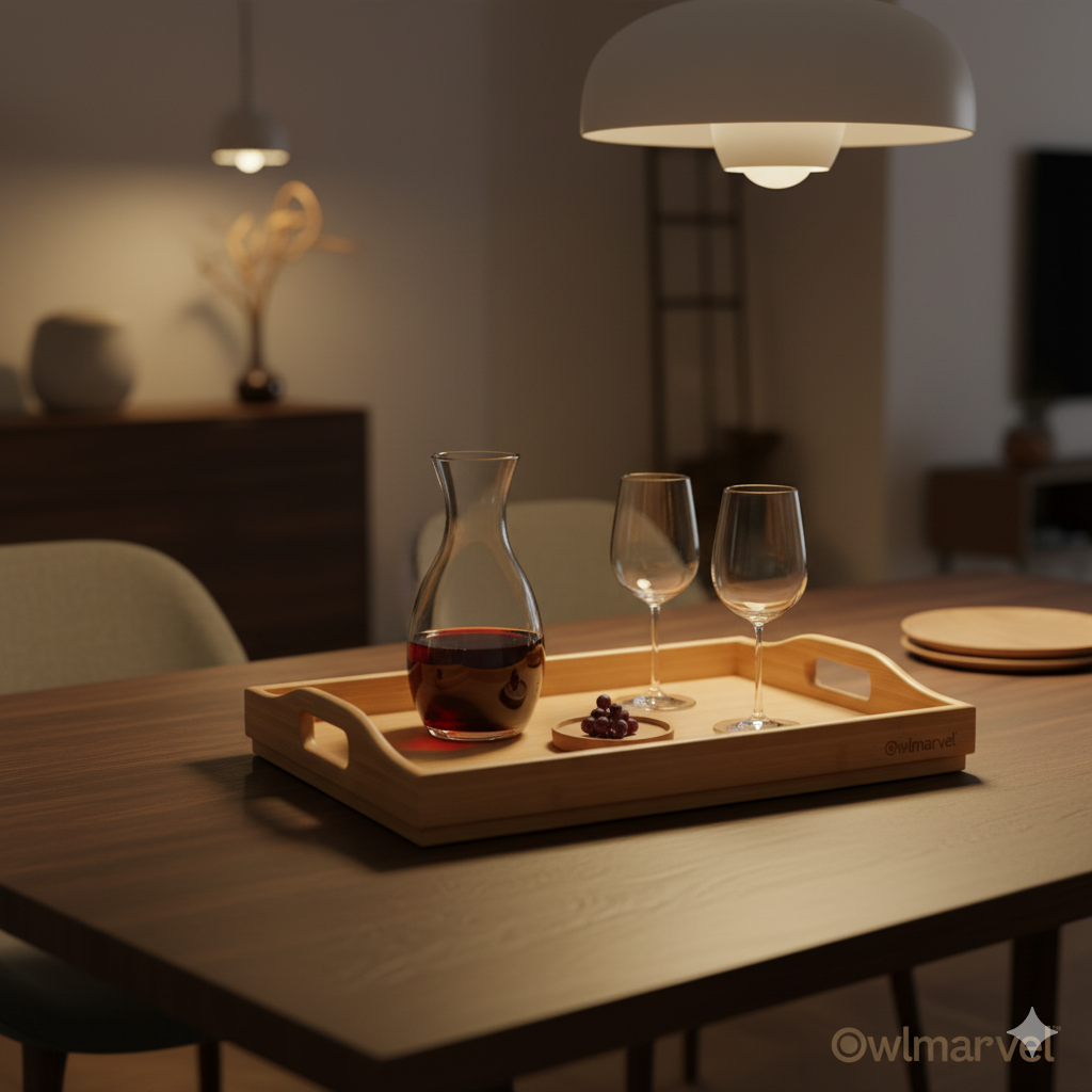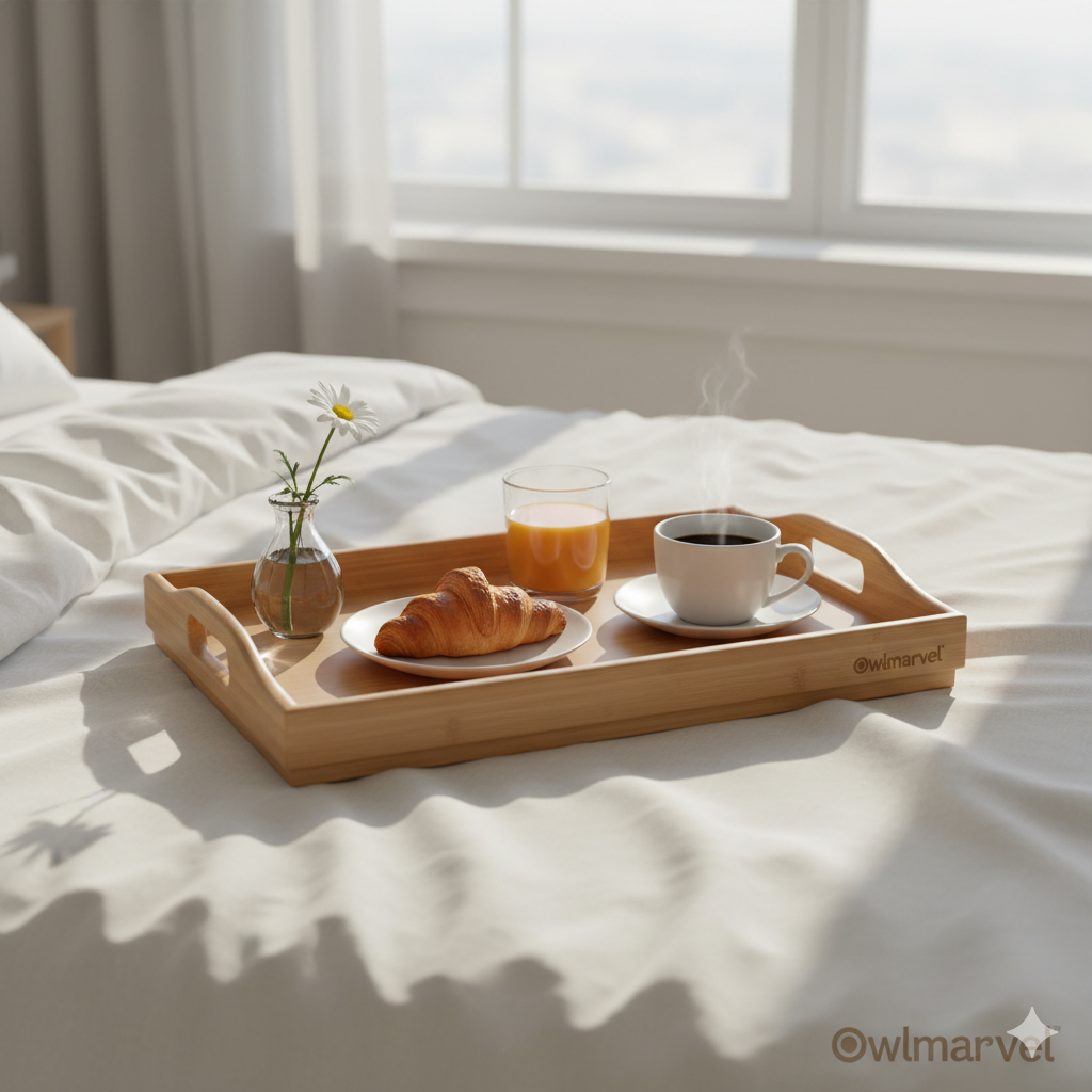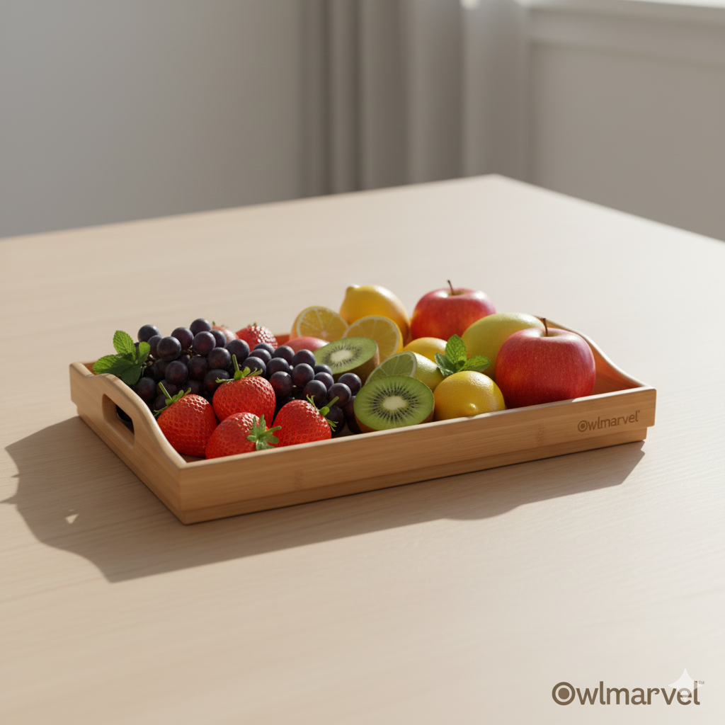 The Owlmarvel Wooden Serving Tray is expertly crafted from eco-friendly natural bamboo, combining durability with rustic charm. With smooth edges and sturdy built-in handles, it is perfect for serving breakfast in bed, carrying drinks, or displaying decorative items. Its polished surface ensures easy cleaning while the warm wood tones add sophistication to any home décor. Ideal for both practical use and stylish presentation.